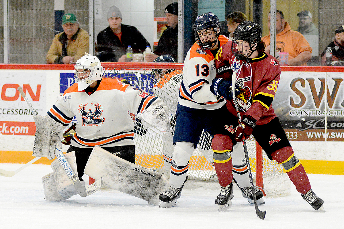 VIDEO/GALLERY: Thunderbirds withstand late Rock rally to take Game 1 in OT on fortunate break by Webmaster March 20, 2026March 21, 2026