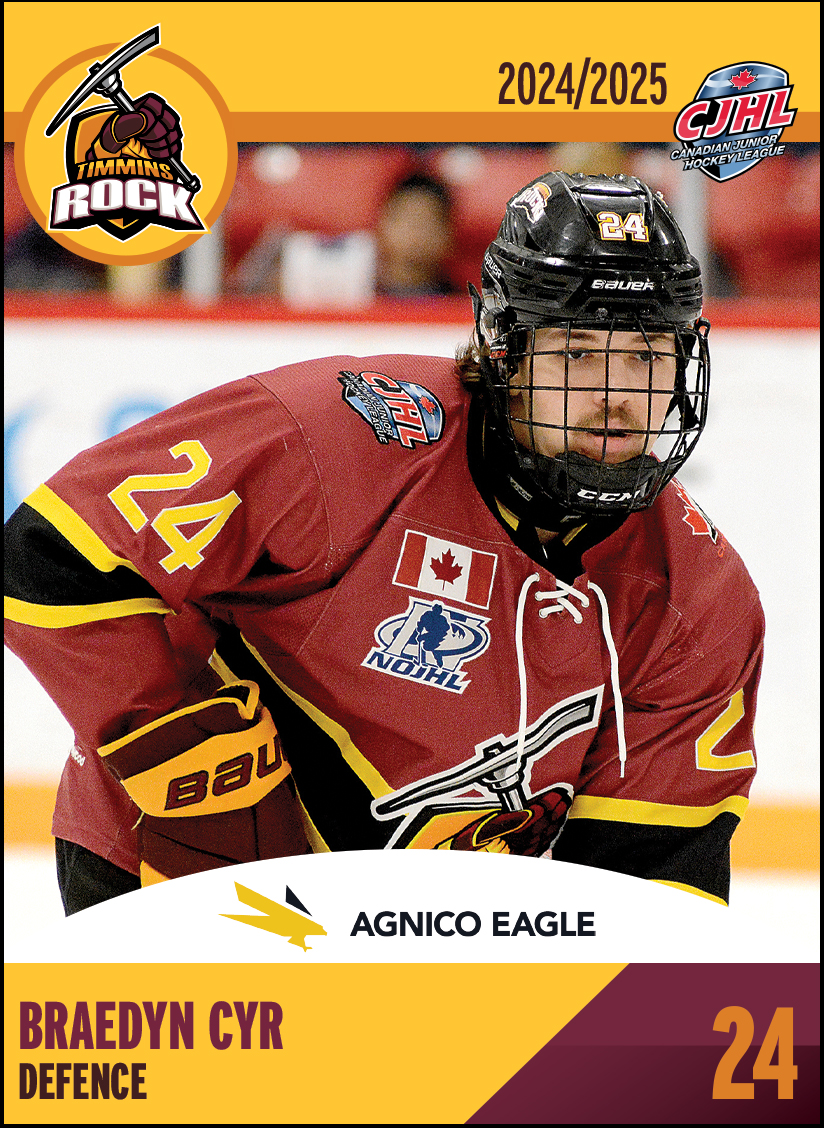 Braedyn Cyr NOJHL STATISTICS 2025-26 PHOTOS 2024-25 PHOTOS 2024-25 NOJHL 2nd All-Star Team Player Sponsor
