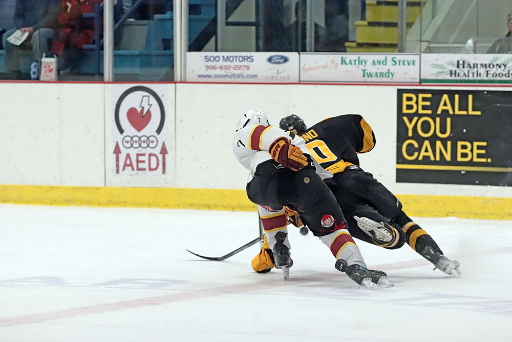 Sault Ste. Marie then retook the lead at 16:08 as Coulson Bell stuffed in a loose puck off a shot put towards the target by Luke Russell.