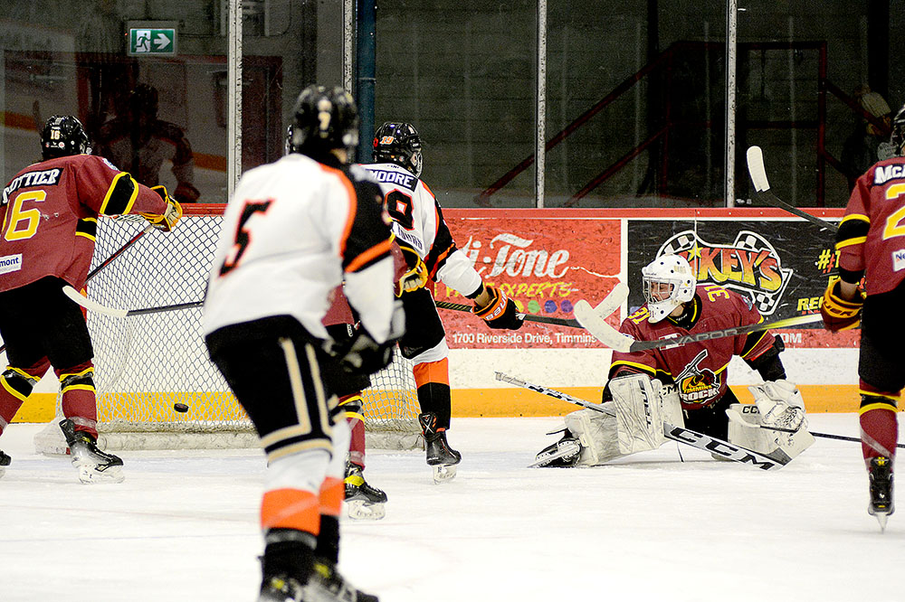 The Lumberjacks carried their 2-1 advantage into the third period and they appeared to have a golden opportunity to put the game away following an incident in front of the Timmins net 7:57 into the frame.