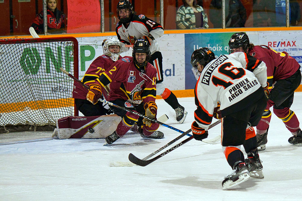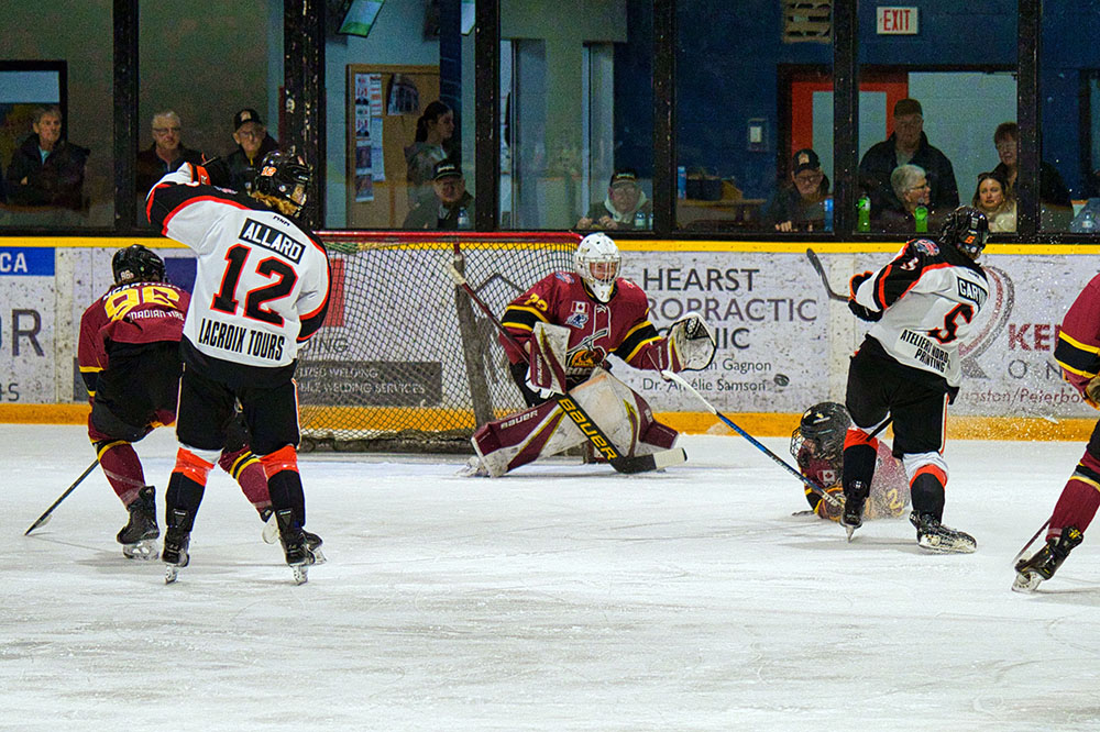 Visiting Timmins began the scoring just 95 seconds into the proceedings when Kaeden McArthur banked in a loose puck off an Ayden Trottier attempt from the point on Hearst’s Alexander Boivin.
