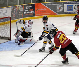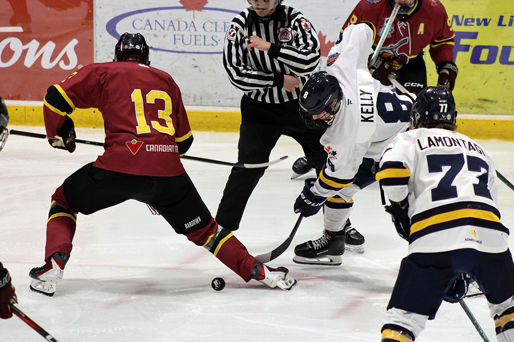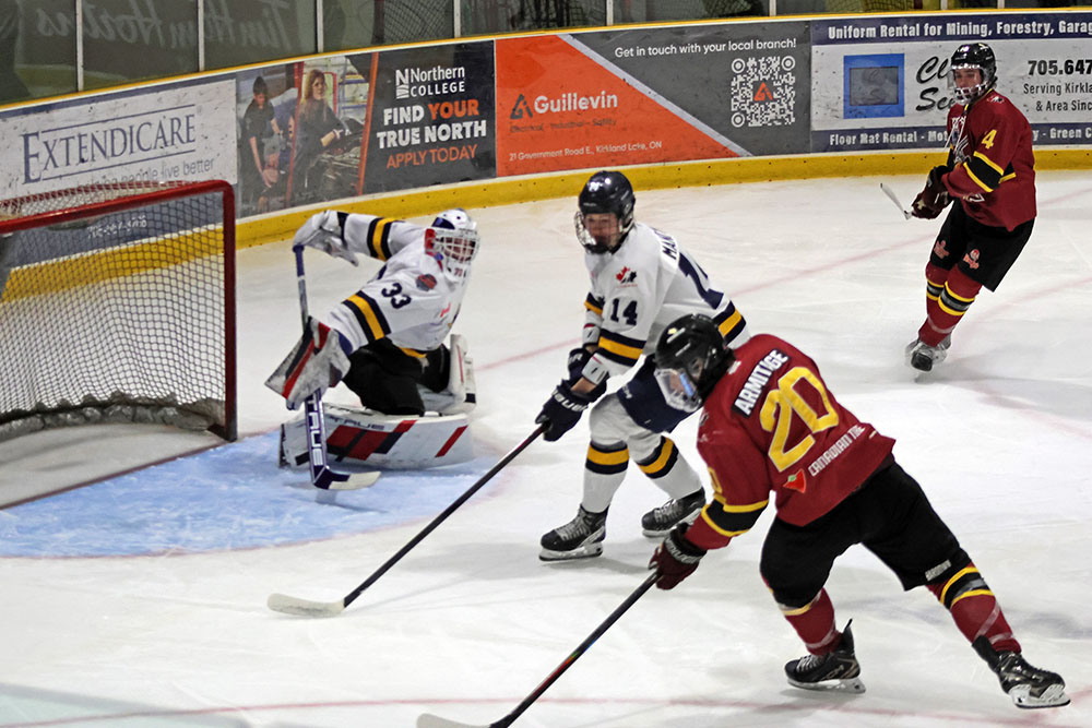 The Rock notched the initial effort in this one when Maxx Hamelin beat Gold Miners’ starter Logan Coates, who was making his NOJHL debut, just over four minutes in when he took a Matthew Kim pass, then sidestepped a defender and made a quick left-to-right deke before he tucked in his ninth tally of the campaign.
