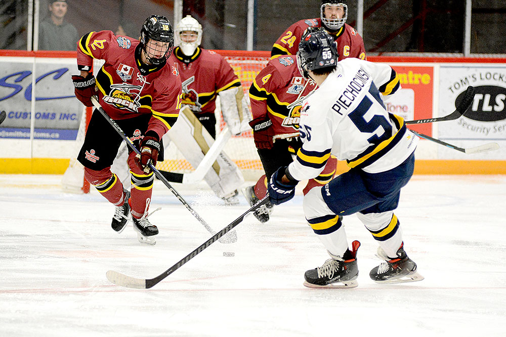 There, Timmins eventually sealed the outcome in the final minute, via the power play, as Brant Romaniuk saucered a pass up to McArthur who went in alone and neatly tucked a backhand through the legs of McInnes to round out the scoring.
