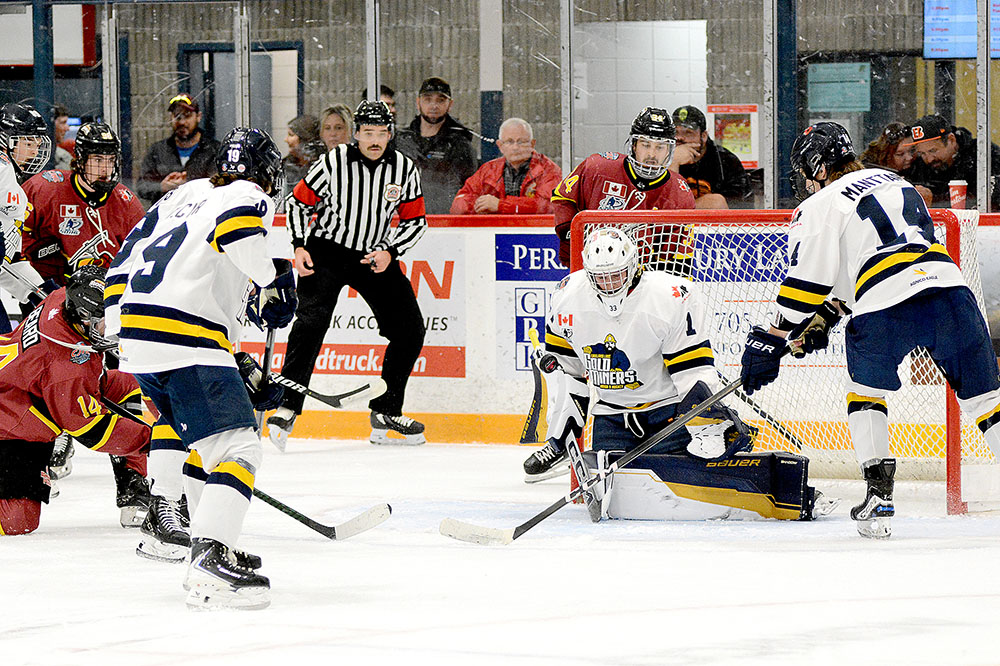 Kirkland Lake answered that 35 second later when Fynn Manttari fired a feed in front that clipped off teammate Matthew Neuman and in on Timmins’ starter Ayden Mullen.