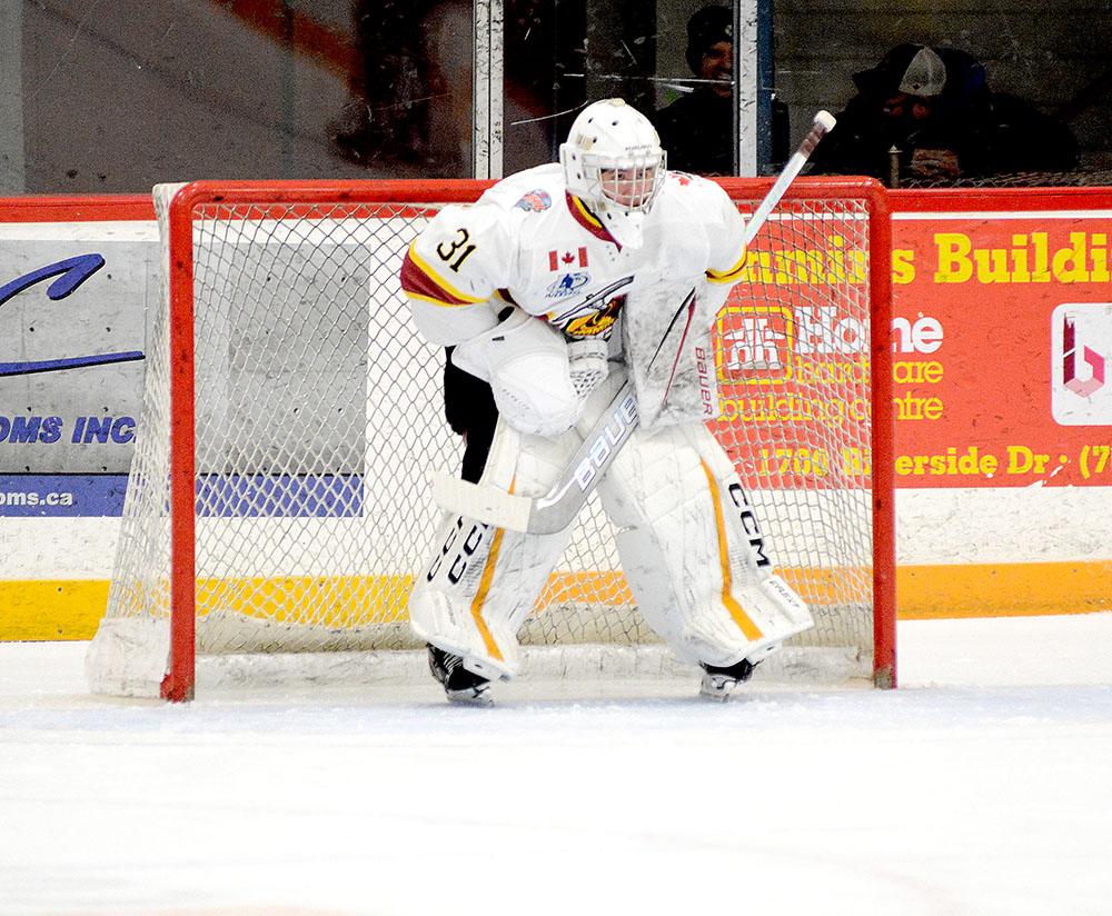 TIMMINS, Ont. – Turning aside every attempt fired his way, Timmins Rock netminder Ayden Mullen posted his second shutout of the season as part of a 5-0 triumph over the Powassan Voodoos in a Northern Ontario Junior Hockey League meeting Friday at McIntyre Arena.