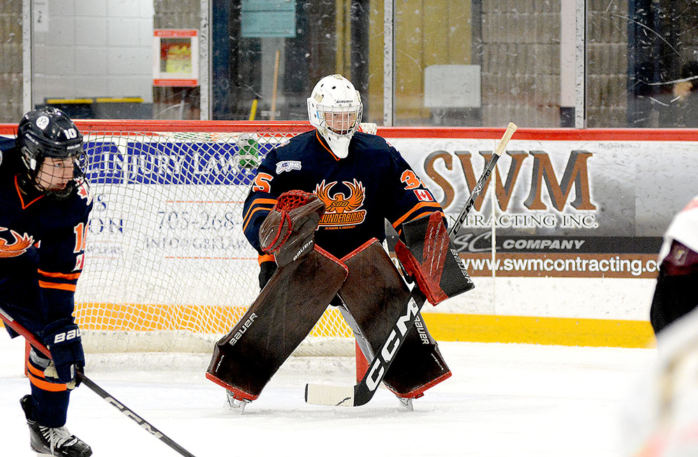 Battling back, T-Birds defenceman Vincent Bondy finished off a chance while battling down low while they were up a skater.