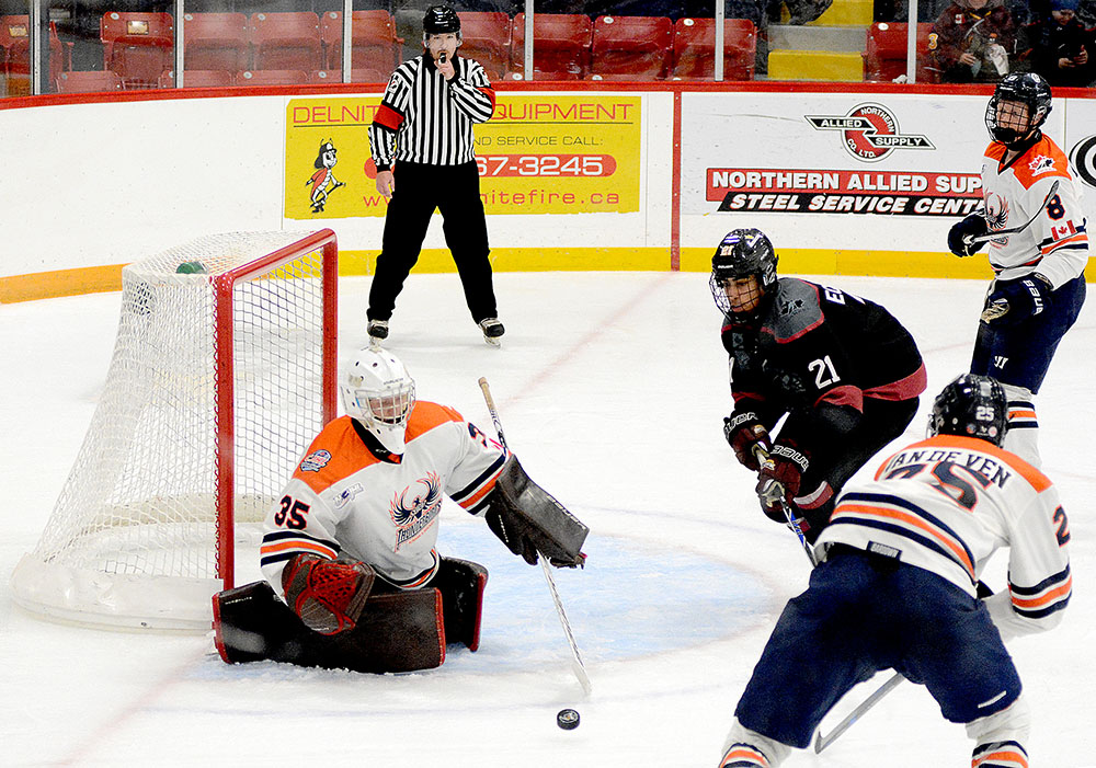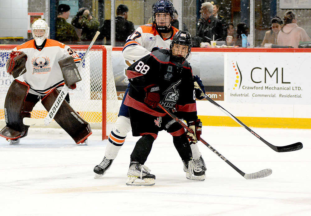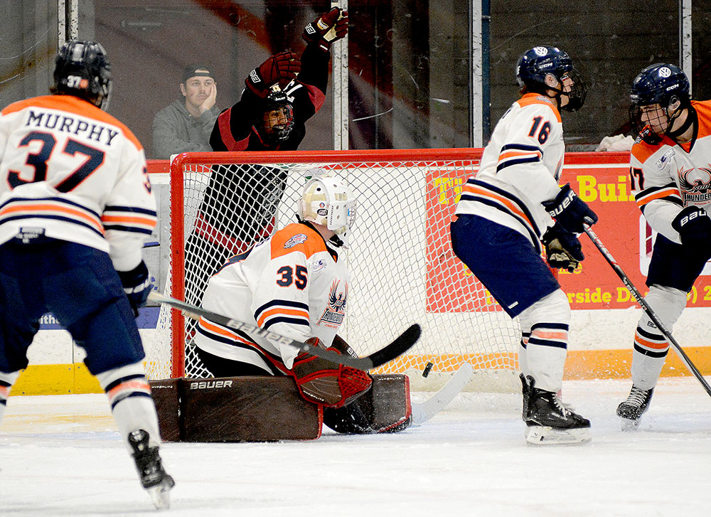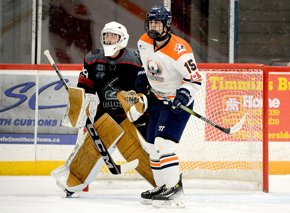 The Rock struck first in the matchup when Ben Climenhaga collected in initial NOJHL tally just over two minutes in as he moved in from the point and whipped a shot upstairs from the top of the left circle that eluded Thunderbirds’ netminder Ryan Hicks.