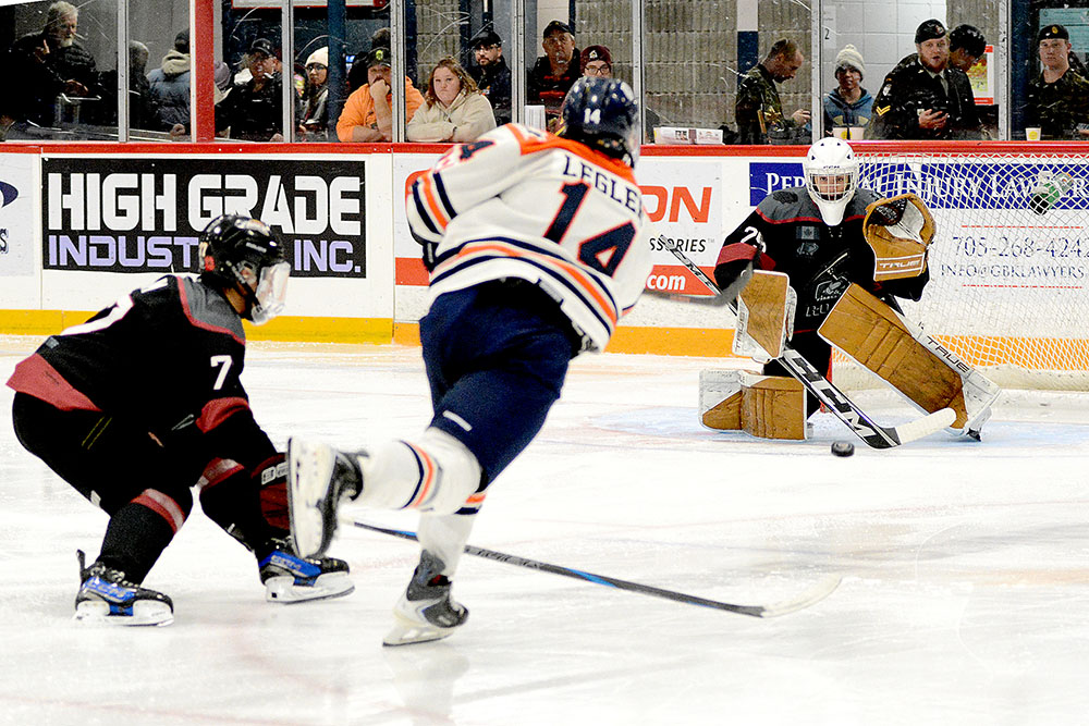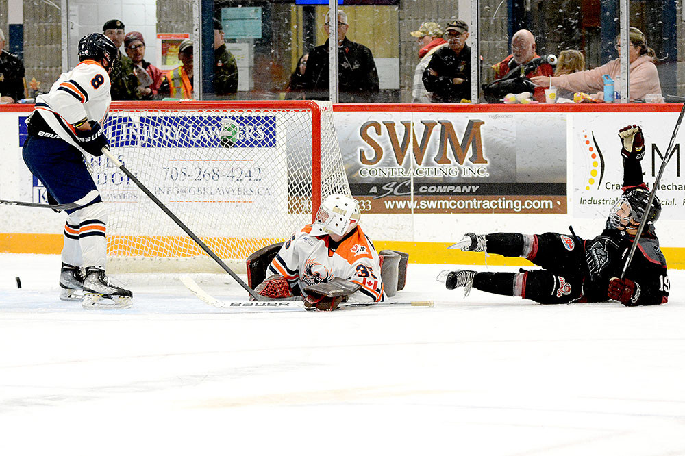 In the late going, William Lobanov picked up his preliminary tally for Timmins by chopping one in from the slot before the Soo’s Gavin Killoran wrapped up the scoring as he slammed in a feed from down-low by Bondy.