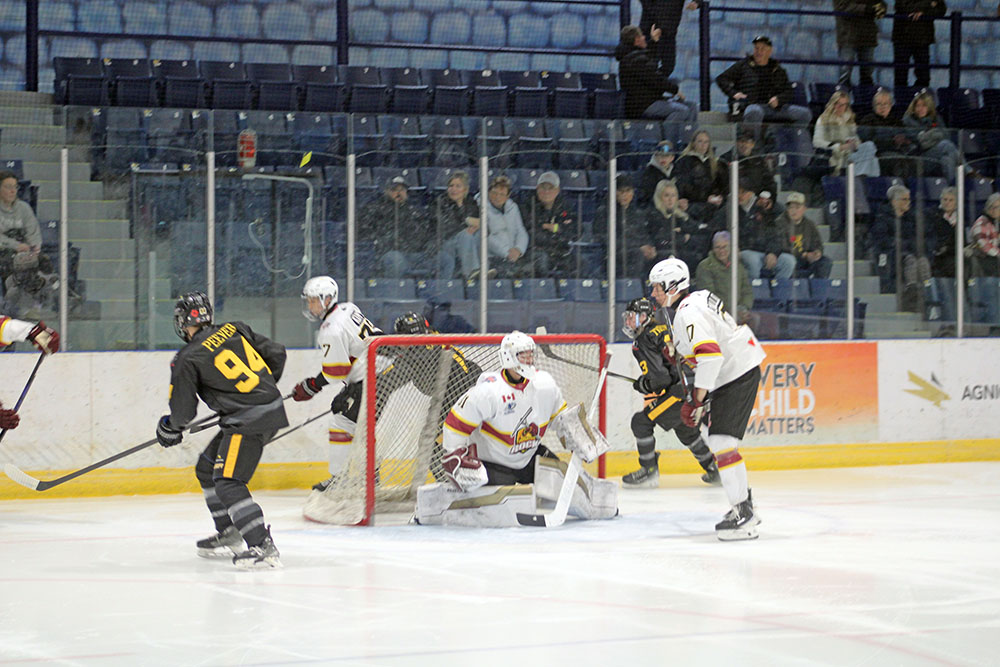 The home side did get one back less than a minute later when St. Pierre beat Ayden Mullen in the Timmins net with a sharp wrist shot from the left side.